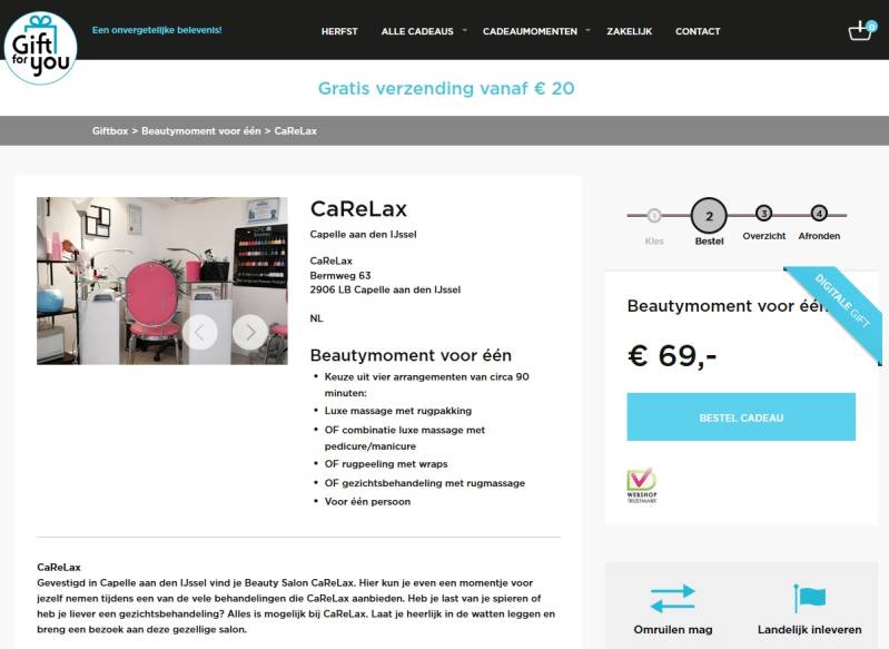 CaRelax is sinds kort partner geworden van Gift for you, Wonderbox en Wellness & Beauty cadeau!